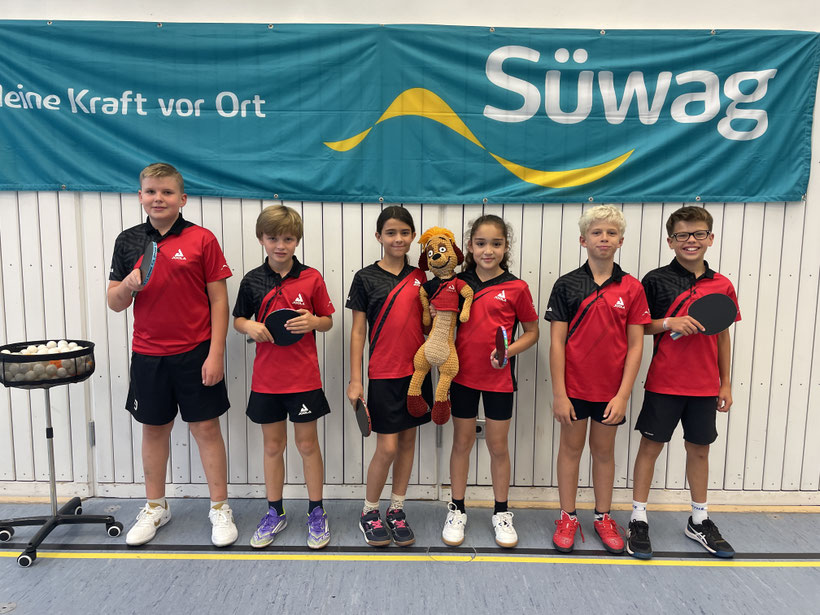 Die Jugend 11 und Jugend 13 treten gemeinsam in einer Mannschaft an und müssen dementsprechend in der stärkeren Jugend 13 Kreisliga antreten. Doch schon in den ersten beiden Saisonspielen zeigten die jüngsten Wallbacher Spieler und Spielerinnen den Gegnern, dass sie nicht zu unterschätzen sind. Sensationell setzen sich Jan, Max, Nala, Yasemin, Johannes und Ben (siehe Foto von links nach rechts) nach Spielen gegen Eltville-Erbach und Breithardt an die Spitze der Tabelle. Während Trainer Joshua Osgood die an der Platte gezeigte Leistung auf das regelmäßige Training zurückführte, gab es auch (jüngere) Stimmen, die den Erfolg auf die Anwesenheit des Maskottchens (siehe Foto in der Mitte) zurückführten. Auf jeden Fall geht ein Dank raus an die Oma von Jan, die das Maskottchen selbst gemacht hat.